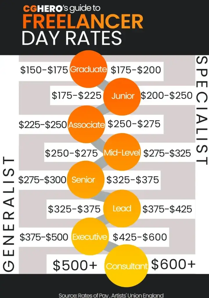 There are endless benefits to switching to fulltime freelancing, and your day rate will always increase as you build your client base and develop your skills and experience. Our own platform, CGHero, is dedicated to helping freelance artists to find incredible work from clients that reward artists fairly for their expertise. Our platform hosts thousands of artists and provides them with the tools to be as successful as they can and take away the administrative overheads for artists and clients so that artists can maximise their time doing what they love.