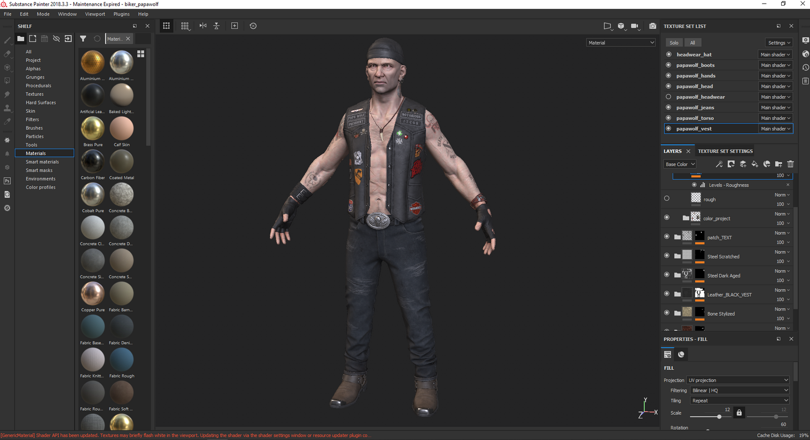 Once the character has been unwrapped, Rodrigo moved onto the texturing stage. For the base skin pore detailing, Rodrigo used XYZ Texturing and after that, he usedSubstance Painterto create all the different materials for skin, denim, leather, and more.
