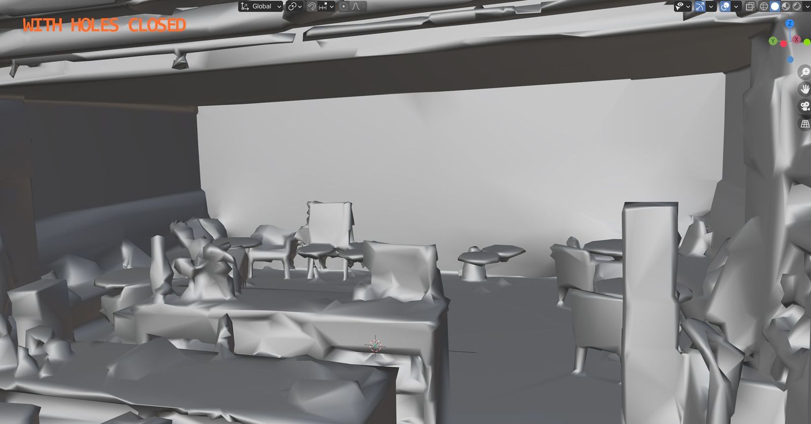 Below you can see the mesh has now been closed and the polygon count heavily reduced.